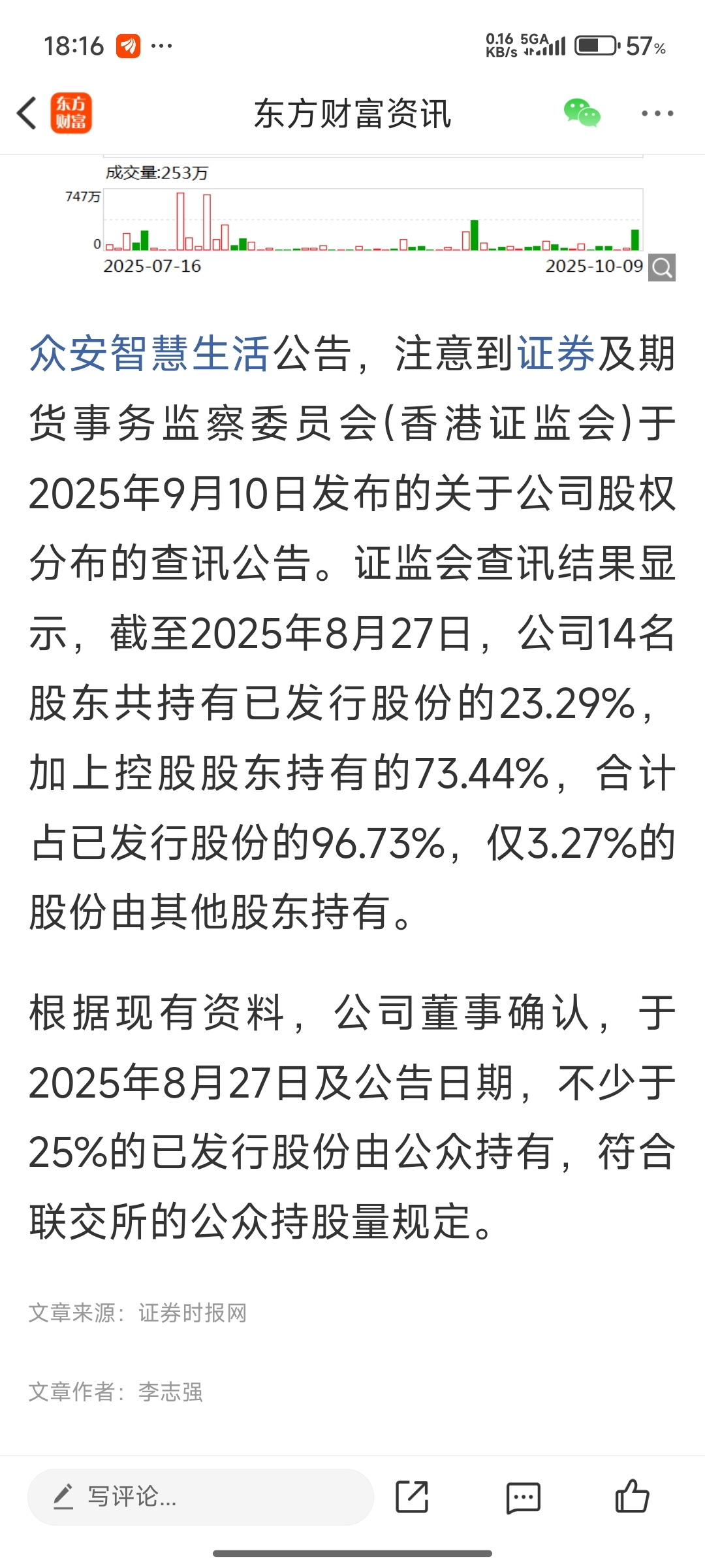 $山高控股(HK|00412)$ 众安智慧前面澄清了,还是被认定股权集中