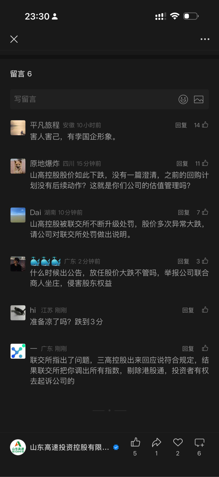 $山高控股(HK|00412)$ 没问题就出来澄清,有问题也要公示,广大股民投资者也要知道怎么死的?