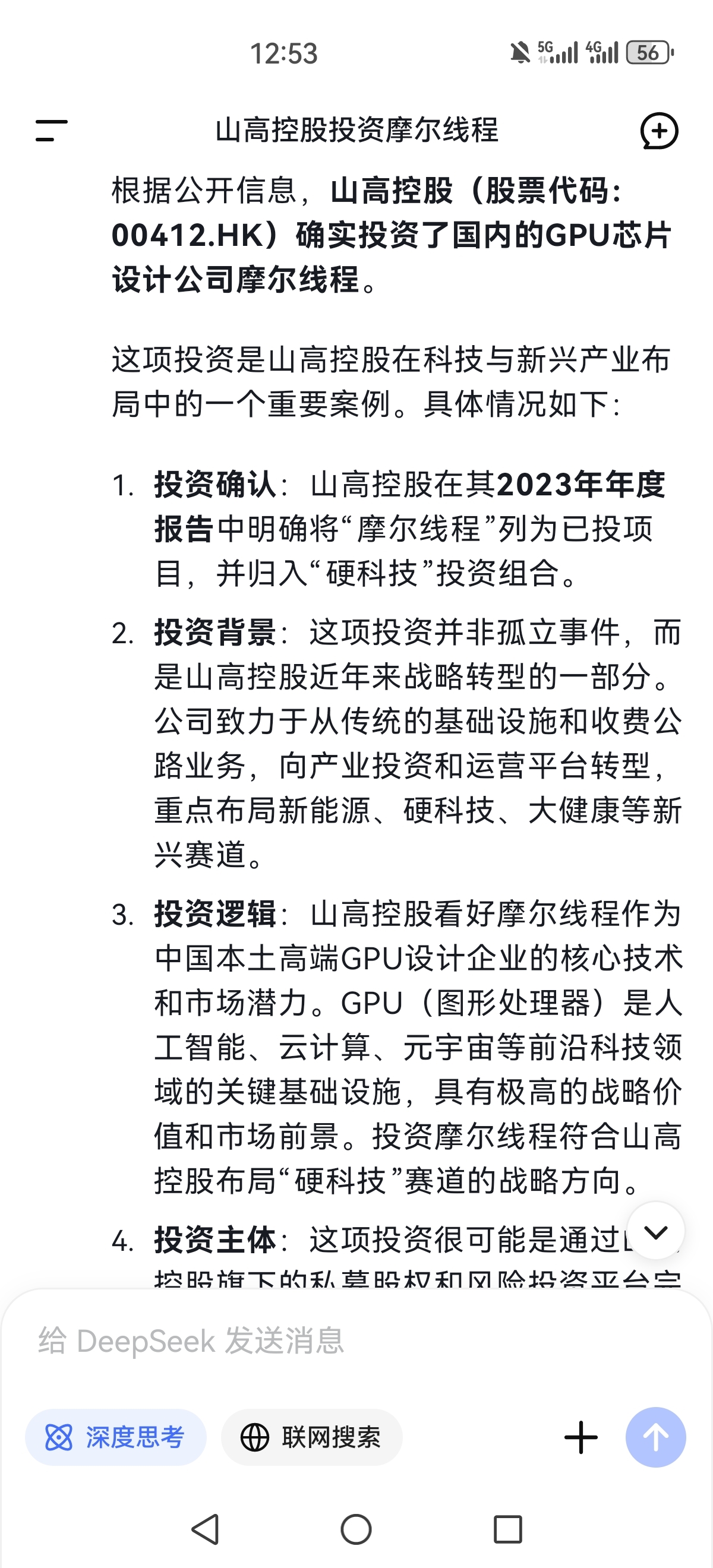 $山高控股(HK|00412)$ 确实投资了摩尔线程!