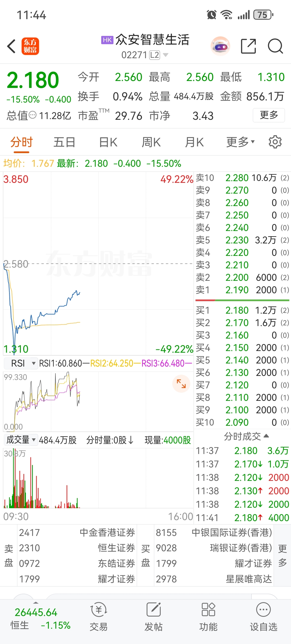 $山高控股(HK|00412)$ 众安跌了49个点都快拉平了,主要原因还是公司不作为。