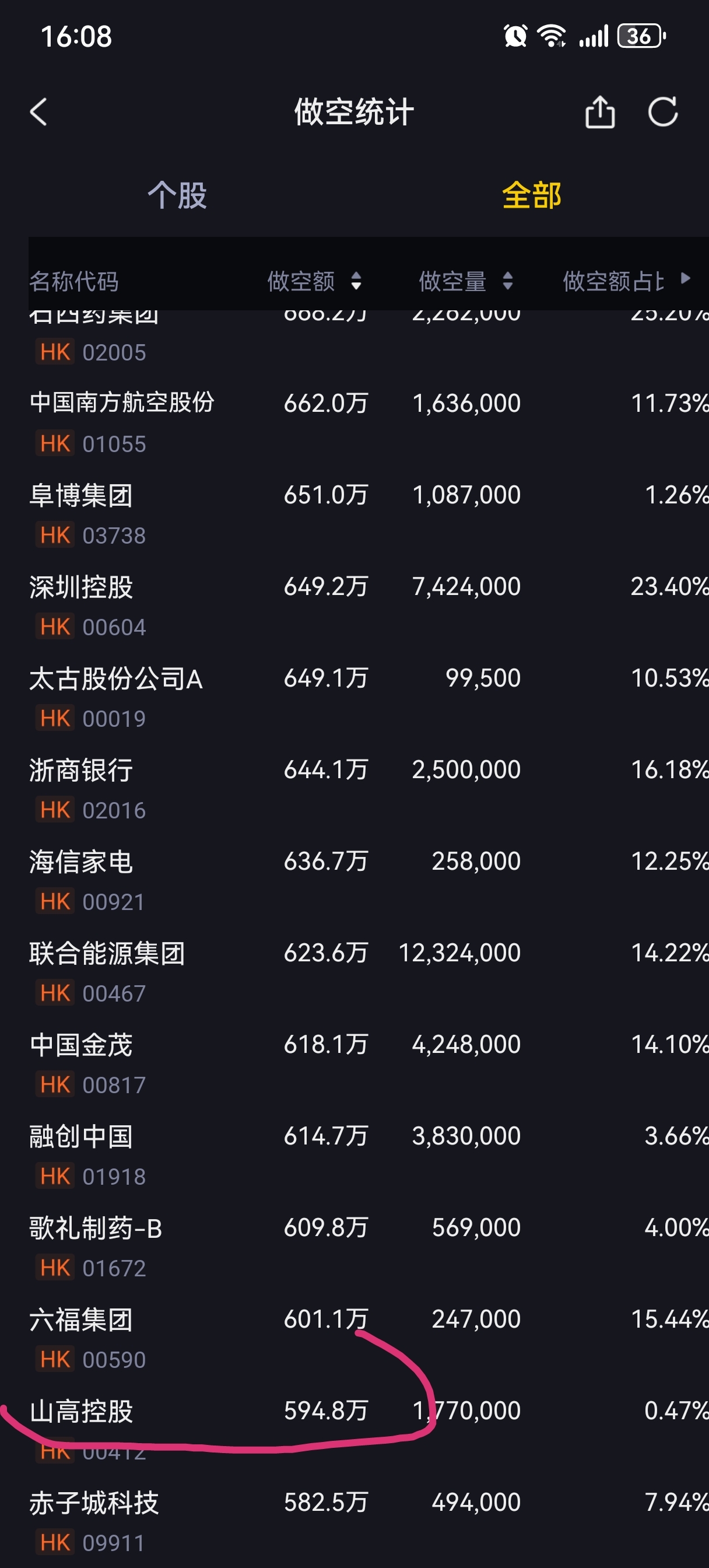 $山高控股(HK|00412)$ 这点做空额港股排名三、四百开外了,怕个毛。