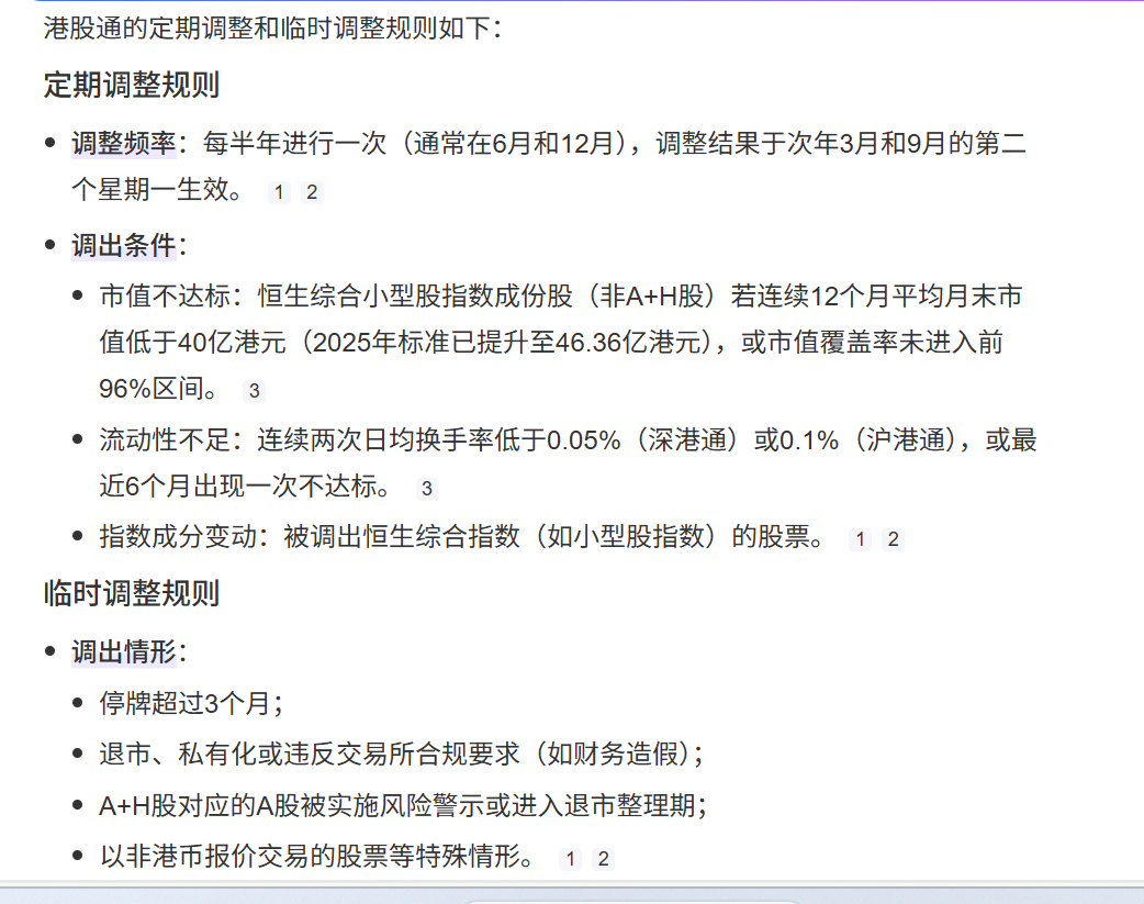 退出港股通指数是单列的,不包括在恒生综合指数里。再对照规则,应该属于不合规的临时