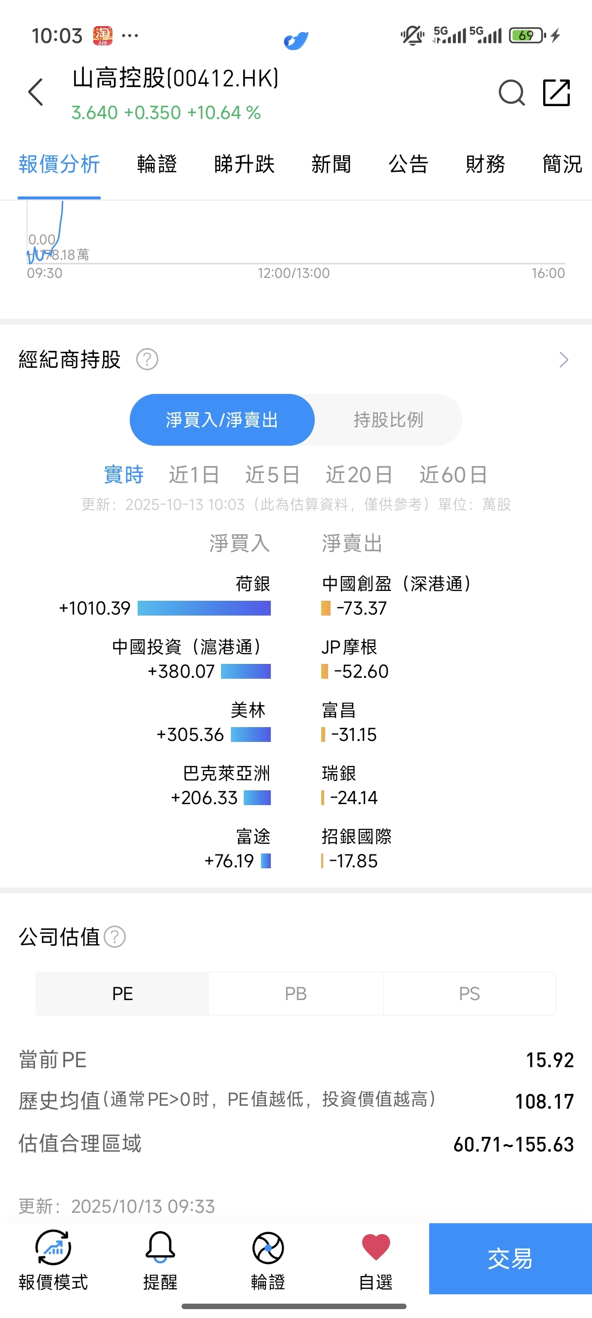 $山高控股(HK|00412)$ 荷银爆买1000多万股