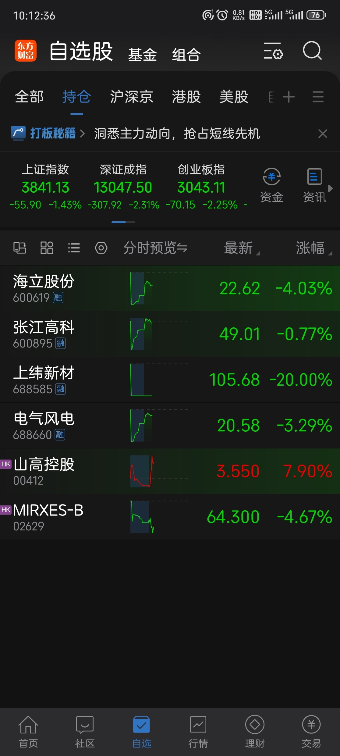 只能硬抗了,今天满仓大跌,损失惨重,10几个W没了。山高只有防守的一点儿仓位。