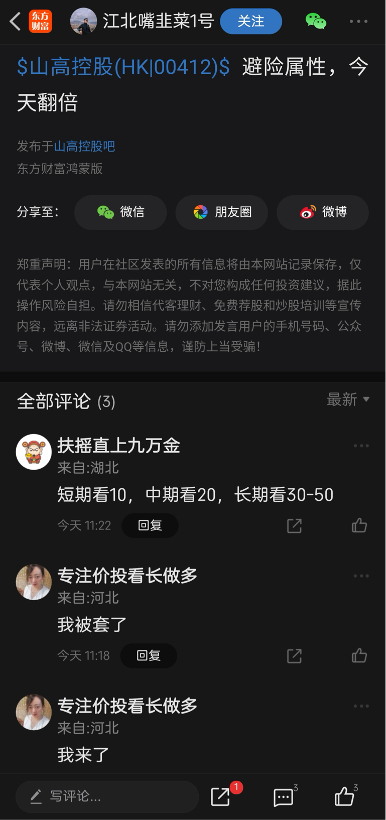 温馨提示: 1.根据《证券法》规定,禁止编造、传播虚假信息或者误导性信息,扰乱证券市场;2.用户在本社区发表的所有资料、言论等仅代表个人观点,与本网站立场无关,不对您构成任何投资建议。用户应基于自己的独立判断,自行决定证券投资并承担相应风险。《东方财富社区管理规定》