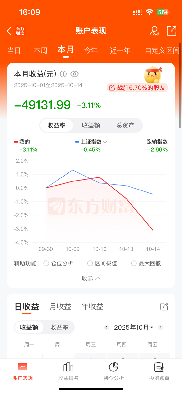整个10月操作的太差了,亏了5万了!整体还是经不起诱惑,太贪心,觉得自己能对抗下