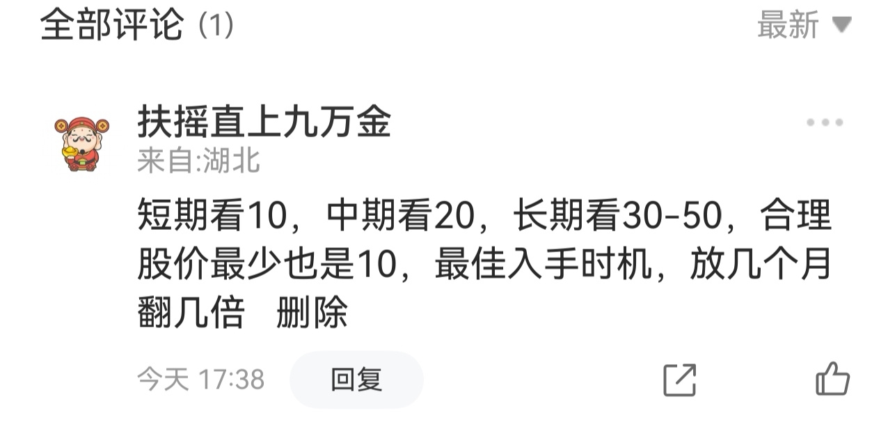 温馨提示: 1.根据《证券法》规定,禁止编造、传播虚假信息或者误导性信息,扰乱证券市场;2.用户在本社区发表的所有资料、言论等仅代表个人观点,与本网站立场无关,不对您构成任何投资建议。用户应基于自己的独立判断,自行决定证券投资并承担相应风险。《东方财富社区管理规定》