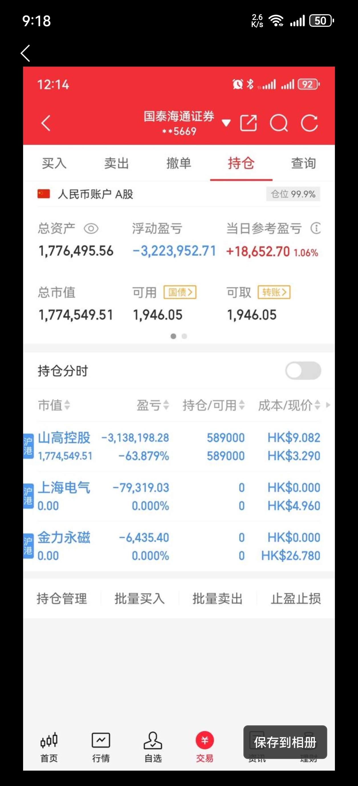 $山高控股(HK|00412)$ 坏消息是又下跌了,好消息是账户下跌幅度越来越小了