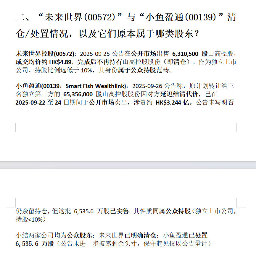 $山高控股(HK|00412)$ 大家好 针对山高控股股权结构的问题,我做了一个全面的分析,非专业人士,仅供参考学习用于帮助不知情股价下跌矛盾点以及长期持有资金的一些参考性资料