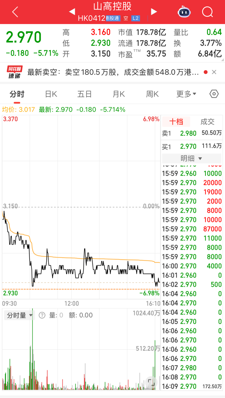 $山高控股(HK|00412)$ 昨天加仓加早了,又到成本线了