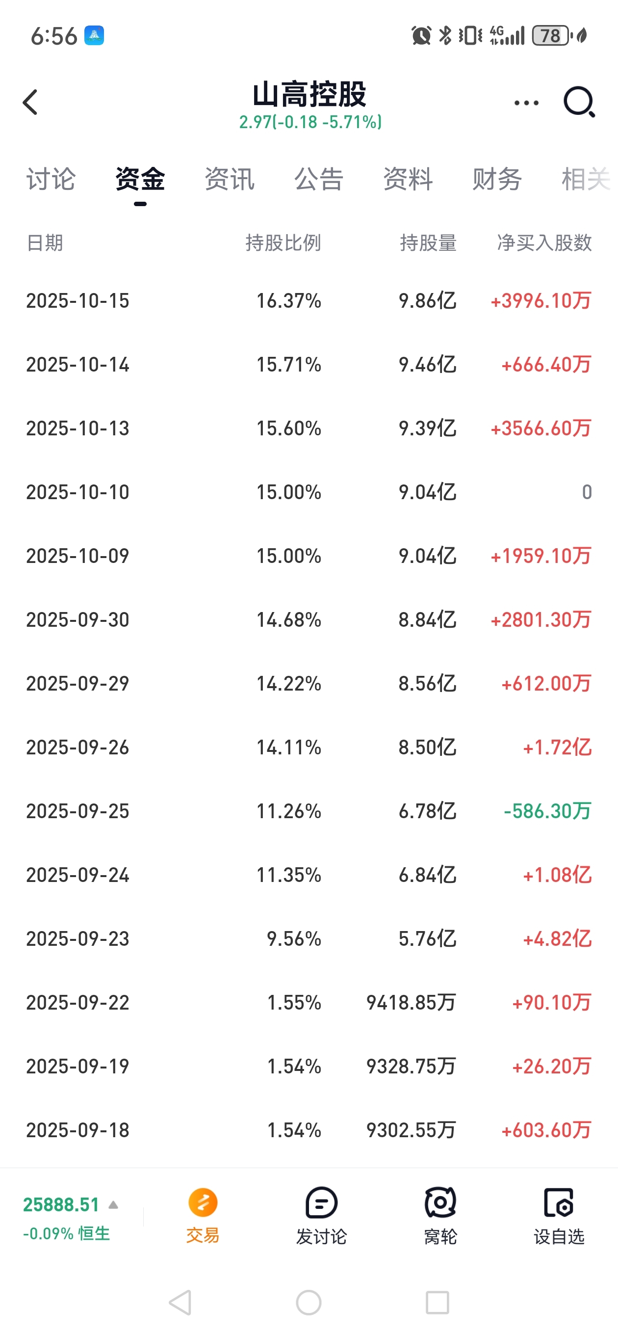 我就奇了怪了,这季到底谁是从919一直持股到现在的。为什么会误信港股通有10%都是转仓的说法。港股通只有919那天增加了9个多点,那是港股通资金从2级市场上花22亿买来的。如果不是港股通资金,跌到1毛钱都有可能,如果不是这22亿净买入,那天的成交量怎么会有60个亿那么多。即使真有转仓,也没有体现在港股通里,估计就是没显示,反正肯定不在这16.37%的持股里。