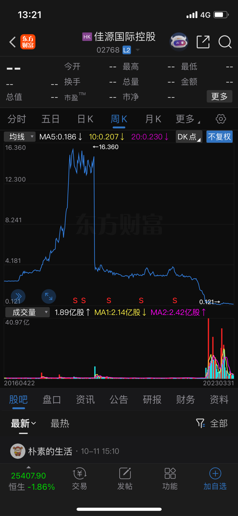 $山高控股(HK|00412)$ 和佳源国际的走势一样,16到3最后跌到1角退市。