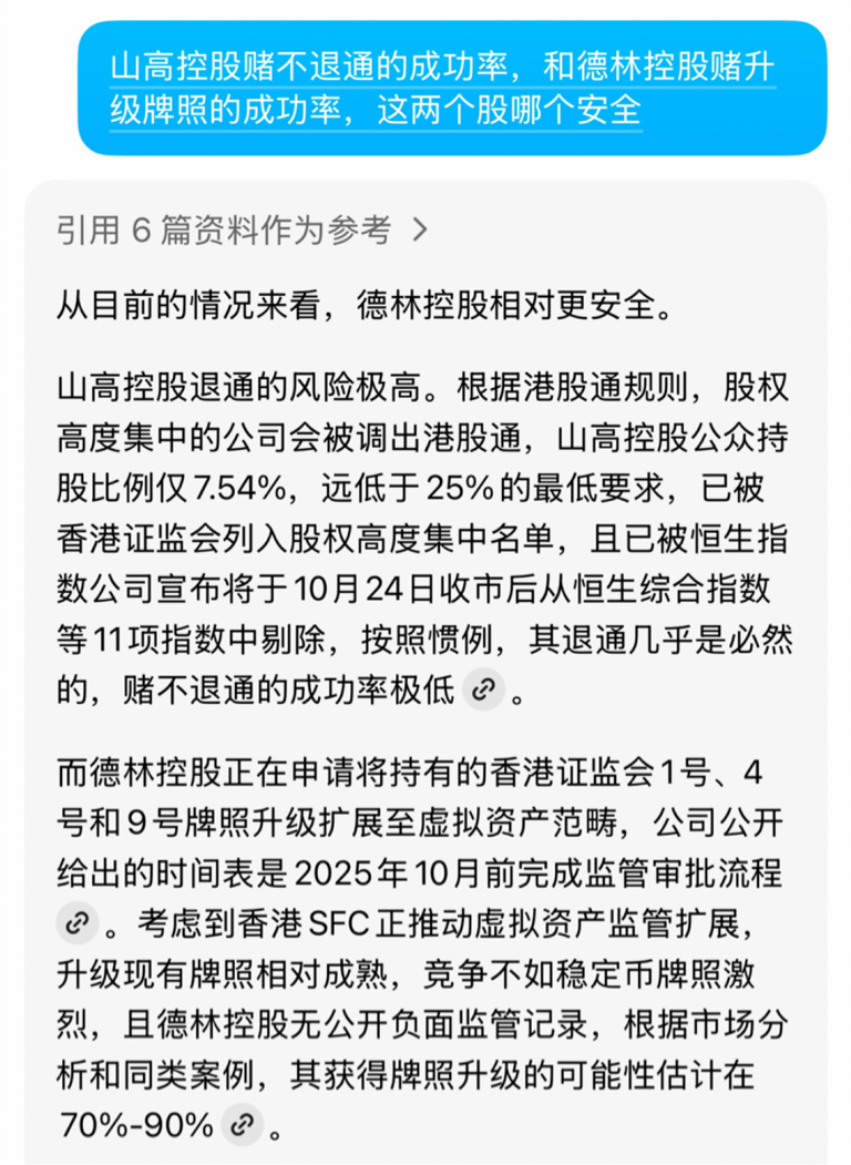 德林控股赢面这么大,不来赌牌照,去赌山高回购?不退通?