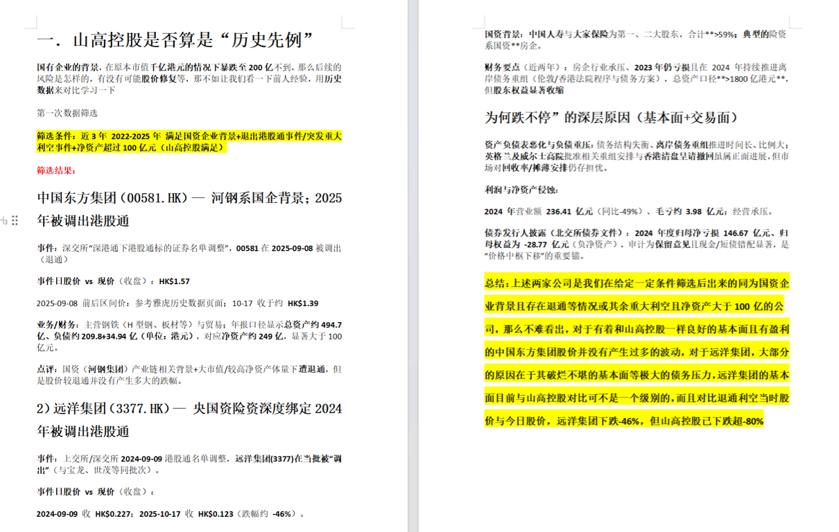 本帖内容:山高控股是否为历史先例看了一下股吧,大家有不少有意思的问题,那么我整理