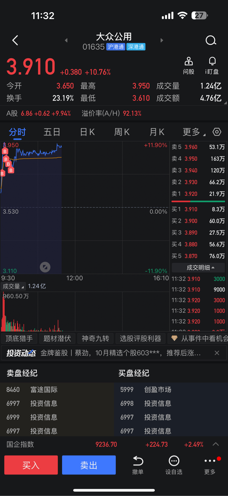 受不了清了,转战AH股大众公用明天吃溢价