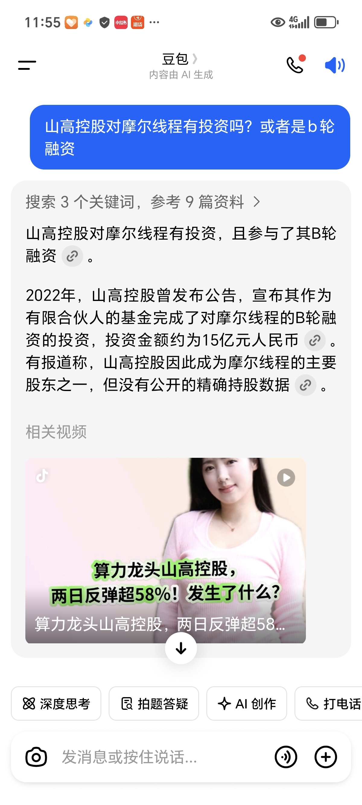山高控股是摩尔线程的主要股东之一,这是真的假的?