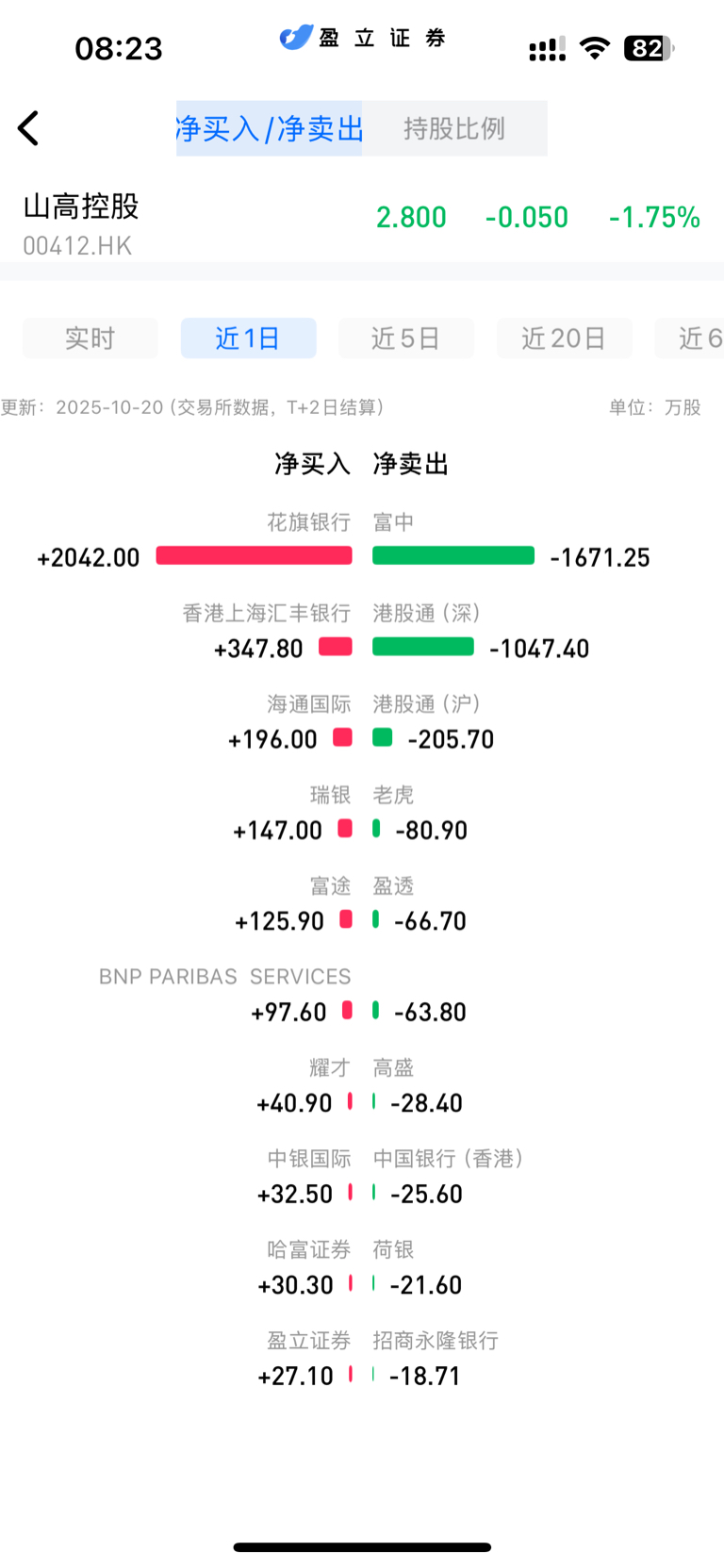 $山高控股(HK|00412)$ 花旗在大额买入,并且被套了。。。。