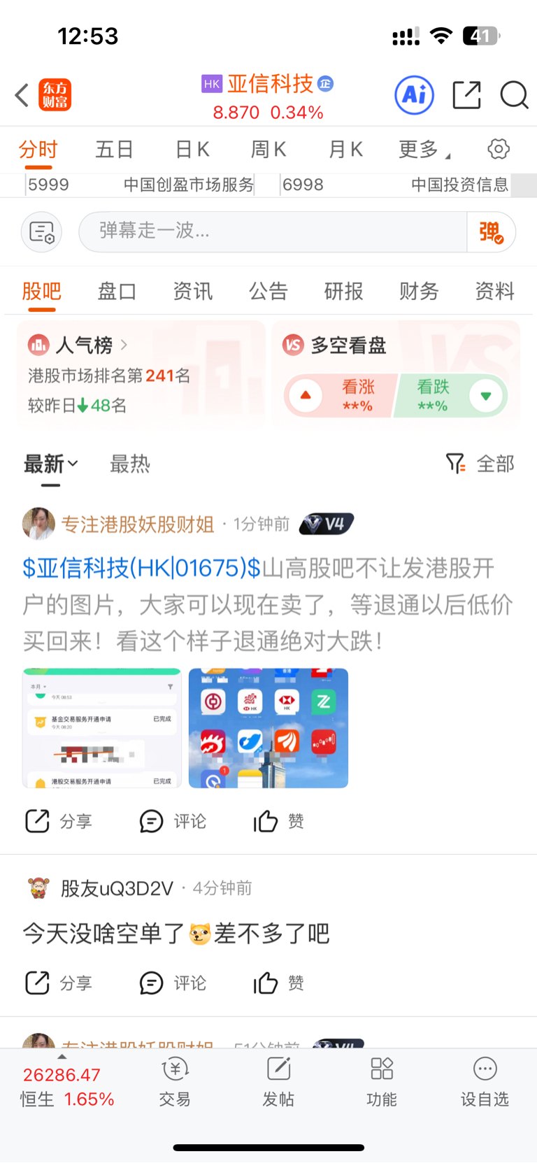 $山高控股(HK|00412)$ 科普一下,开通香港汇丰银行或者众安银行就可以交易退通股!或者开通盈立证券也可以!现在大胆卖,退通以后跌下来可以买回来!