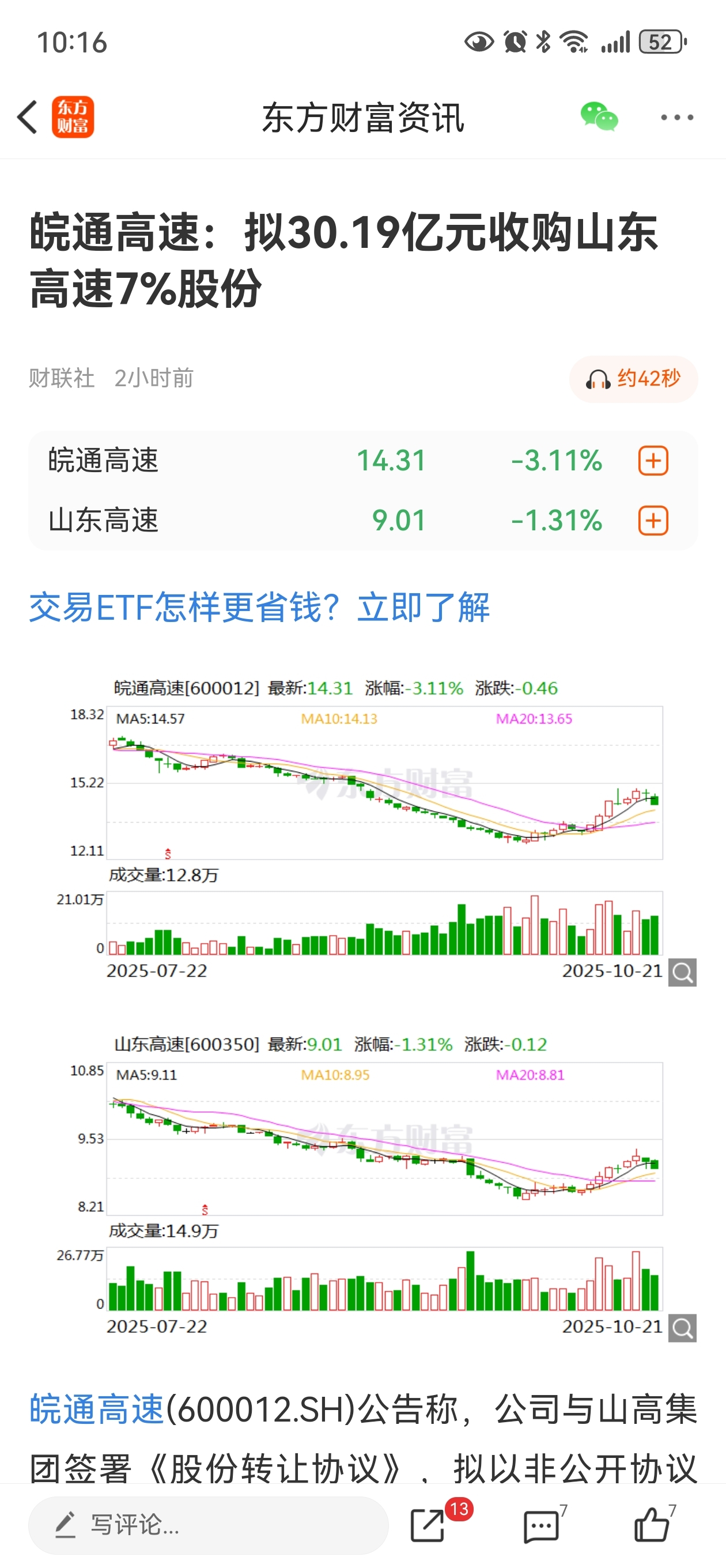 山东高速持有一半山高控股,买山东高速7%相当于买了3.5%的山高控股。开始有动作