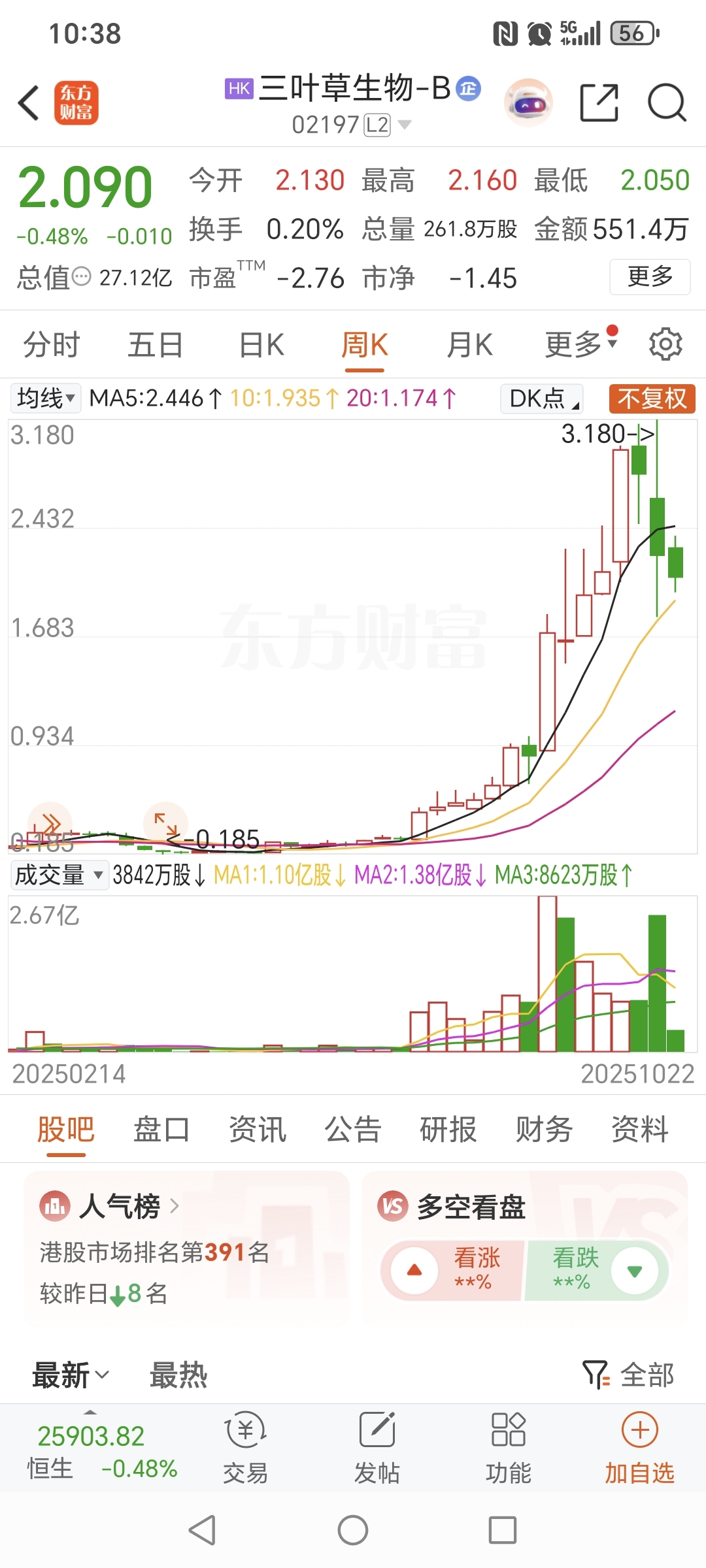 退出港股通后一年上涨15倍,0.2港币到3.25港币。三叶草生物。