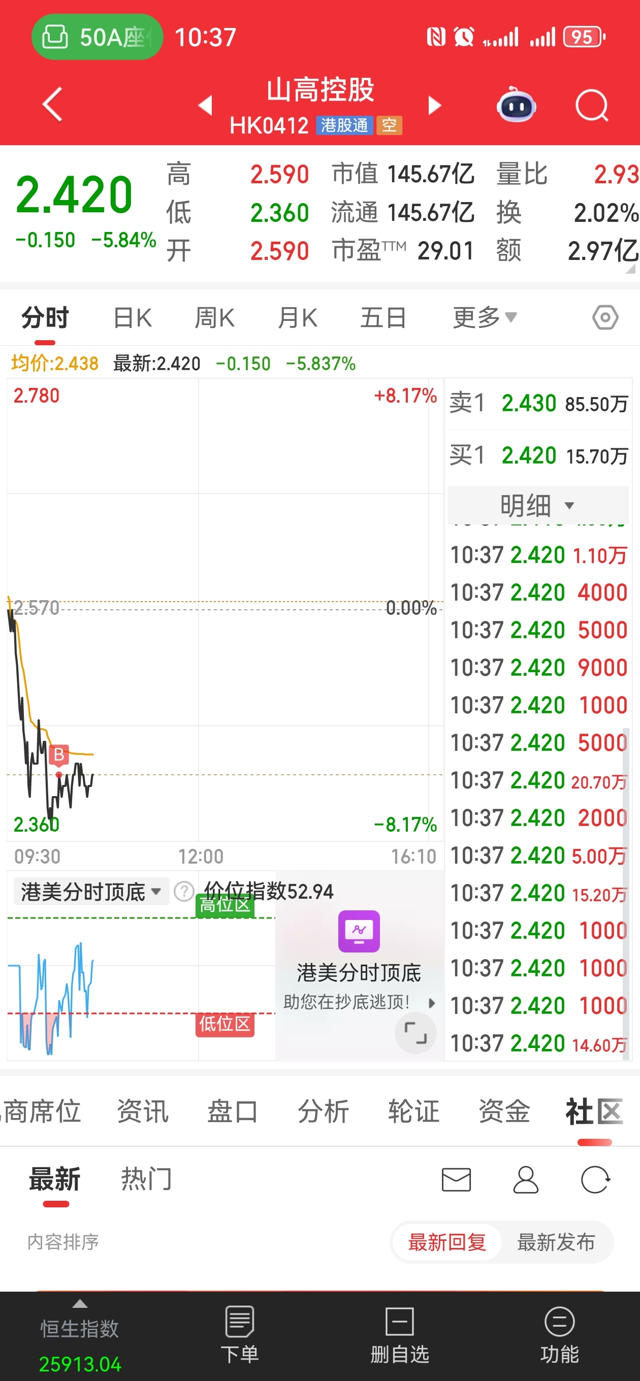 $山高控股(HK|00412)$ 900个w已梭哈,满仓,赌一把
