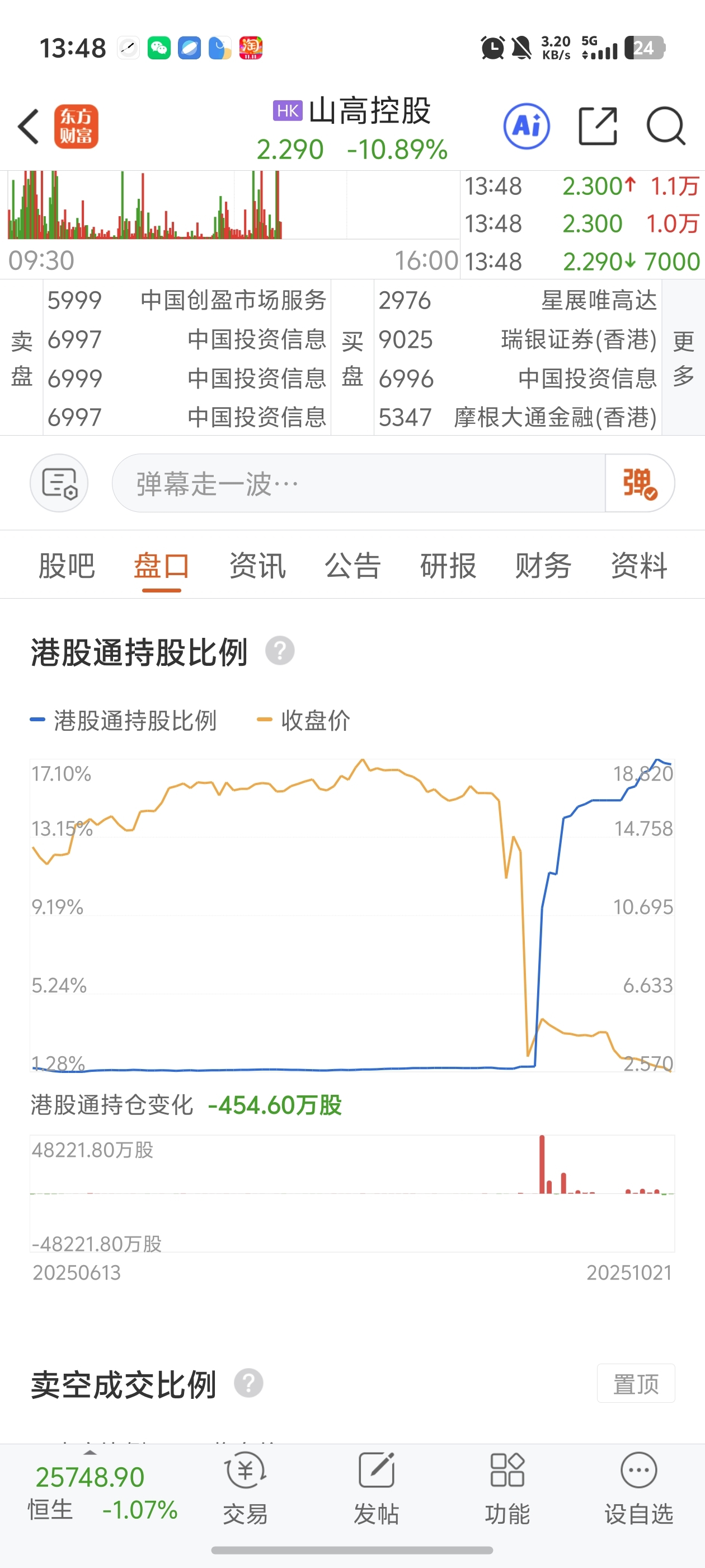 $山高控股(HK|00412)$ 能跑就跑吧,流通股大部分都在港股通手上,退通后只能卖不能补,空空顺势砸个三十点就和假的一样轻松