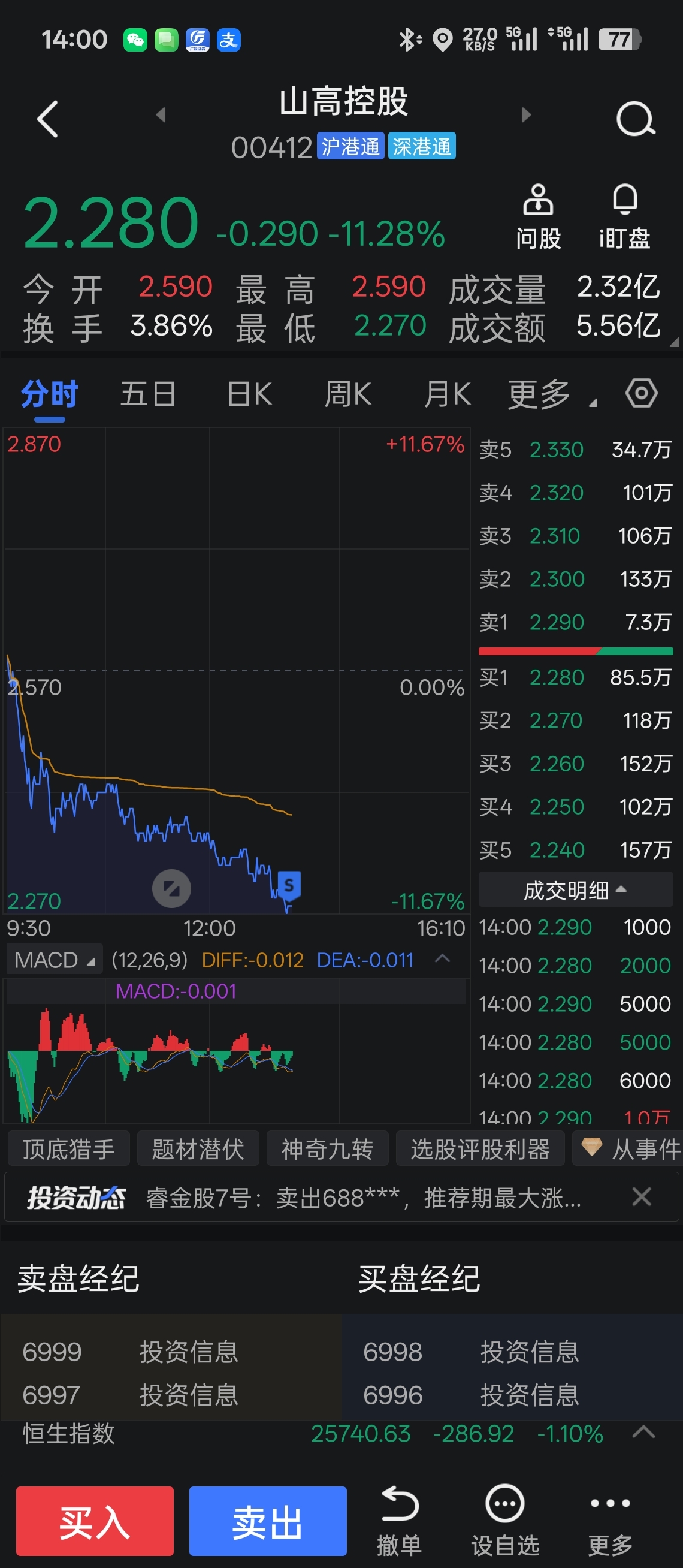 $山高控股(HK|00412)$ 亏得妈都不认得。先走一半吧