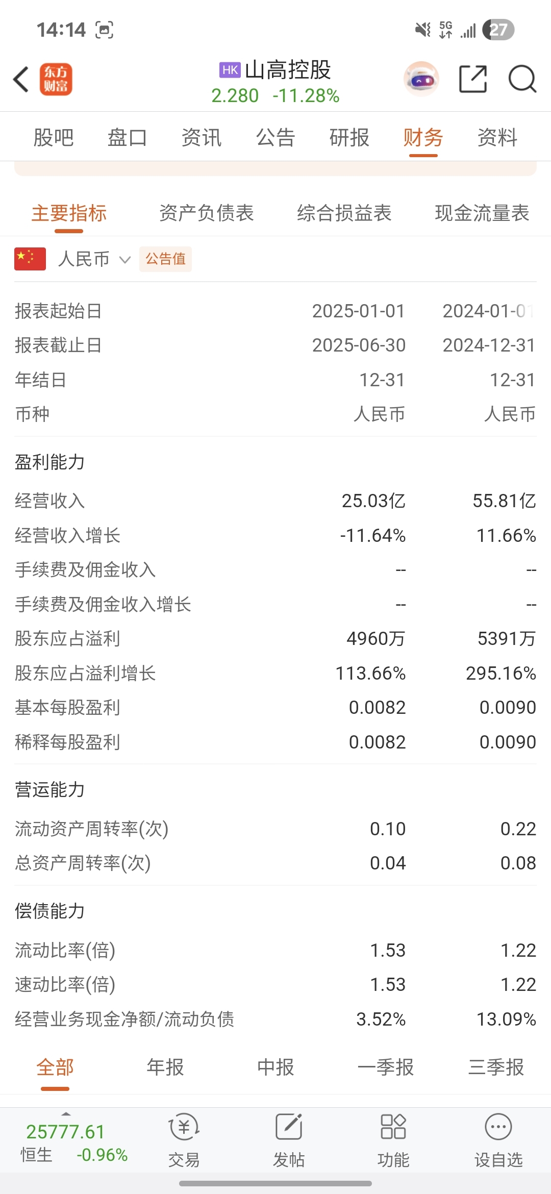 $山高控股(HK|00412)$ 这股为啥利润差?
