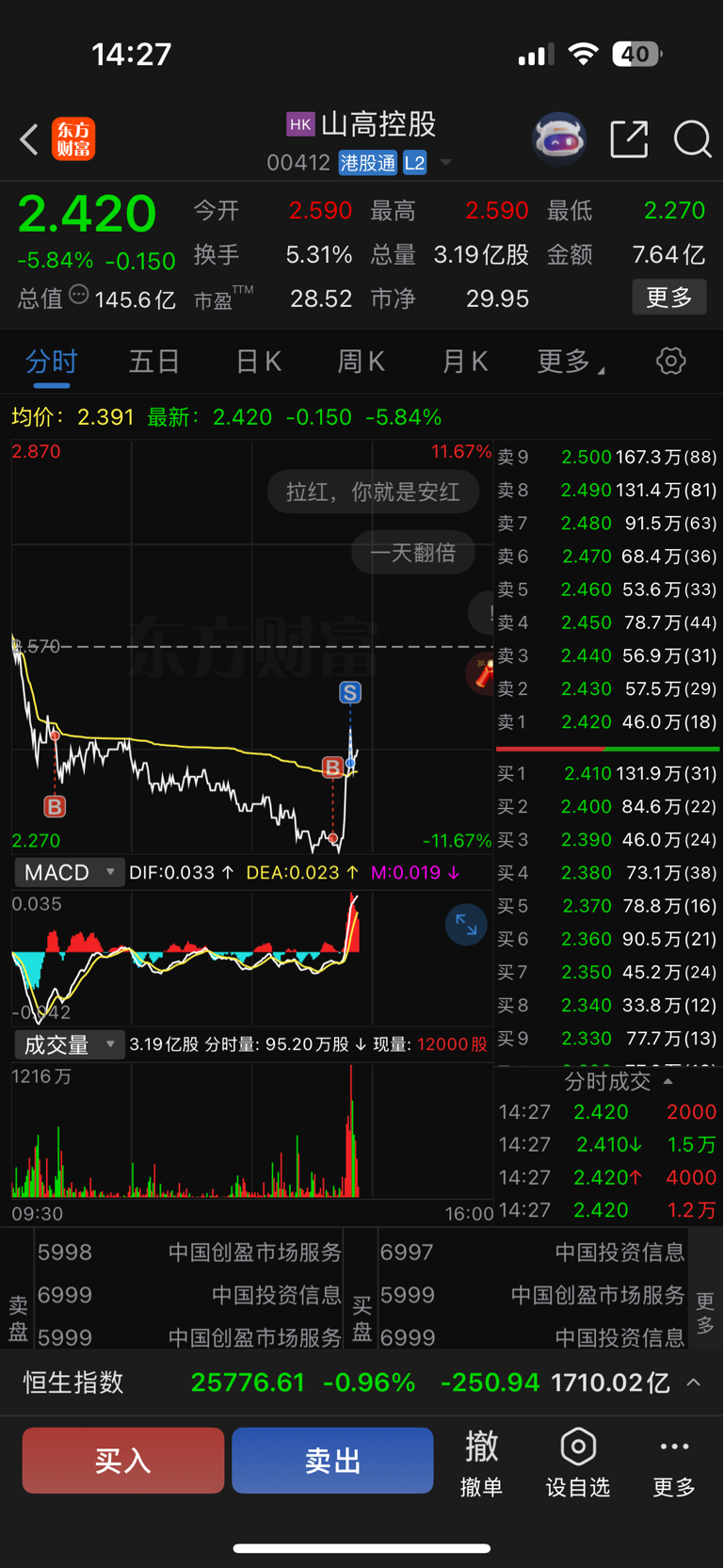 $山高控股(HK|00412)$ 这走势太吓人了,本以为抄底差点被埋了