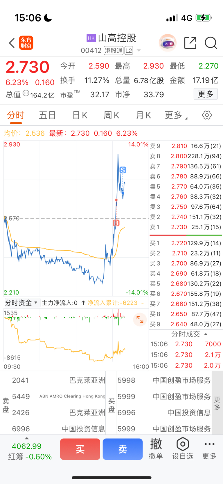 $山高控股(HK|00412)$ 还是太贪,小赚1w走人。