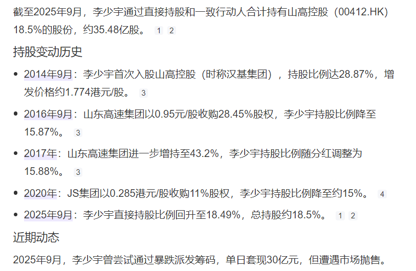 JS集团以0.285港元/股收购11%股权,李少宇持股比例降至约15%。