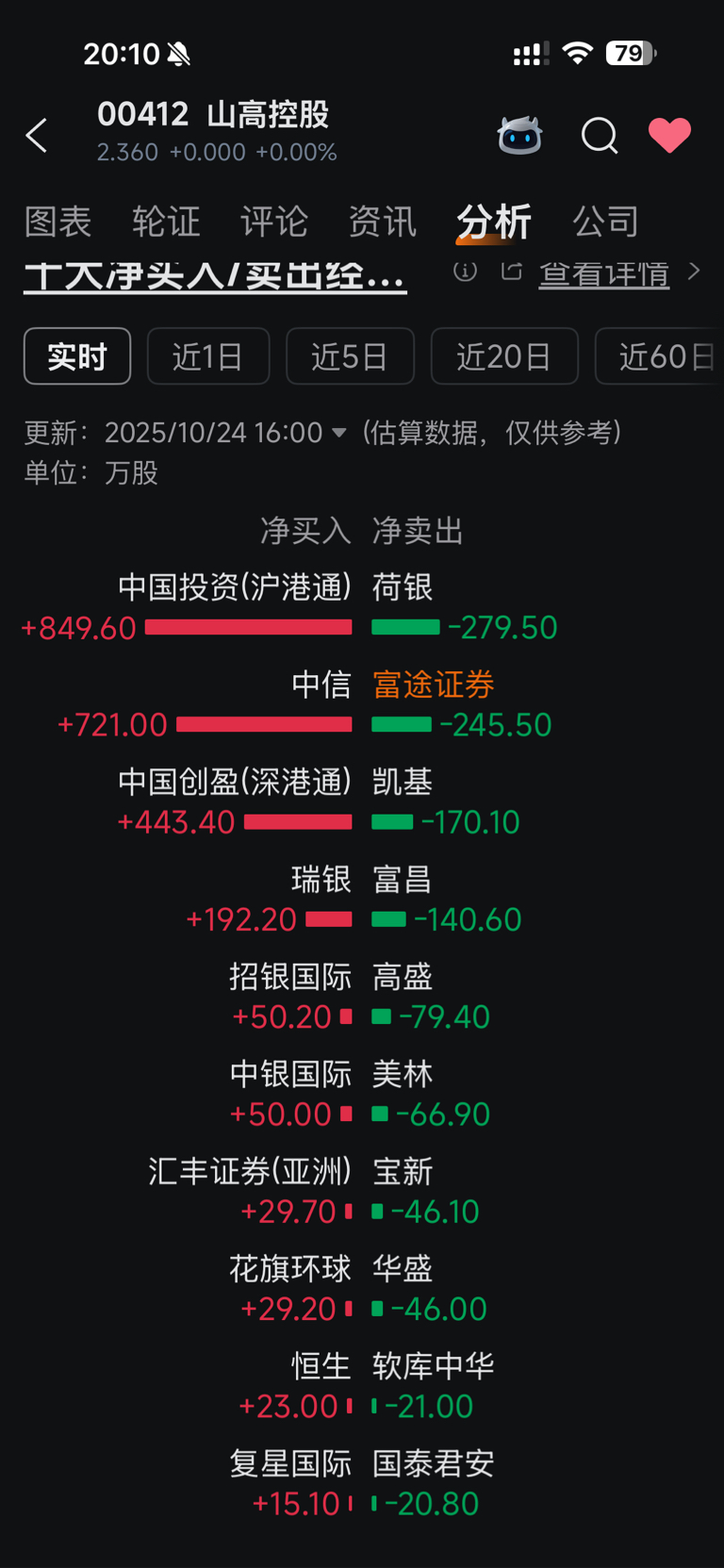 $山高控股(HK|00412)$ 中信尾盘买了好多 几个意思