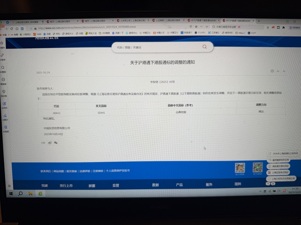 $山高控股(HK|00412)$  刚才好像在那个朋友文章中看到一个今天调出港股通的图片,怎么找不到了?不应该被调出公司不公告的。