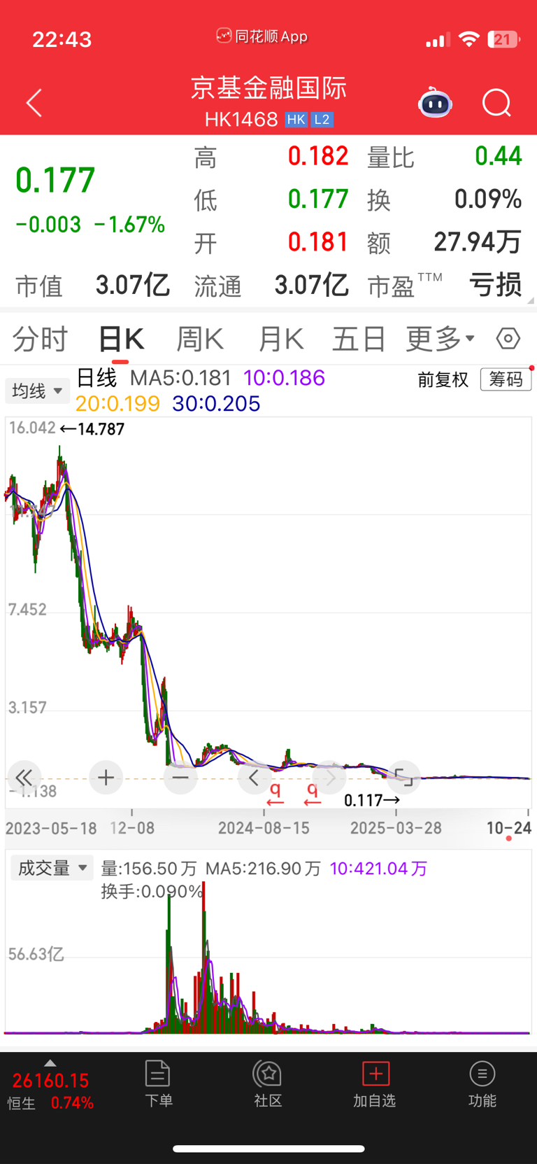 $山高控股(HK|00412)$ 京基退通时有人也看好,退通后只会跌的更猛