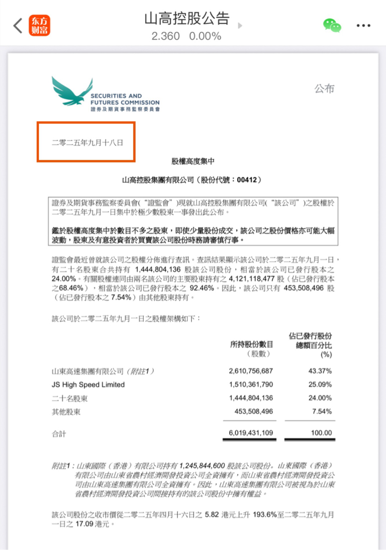 重大利好,山高控股,股权集中问题已解决。9.18日公告股权集中,港股通仅持有1.
