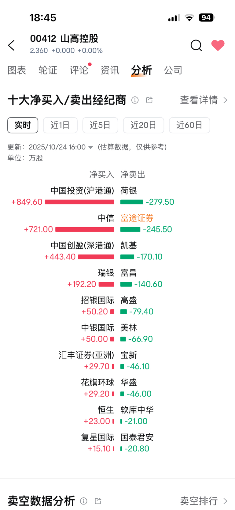 $山高控股(HK|00412)$ 周五中信和中央汇金大量增持,无惧abn带头做空
