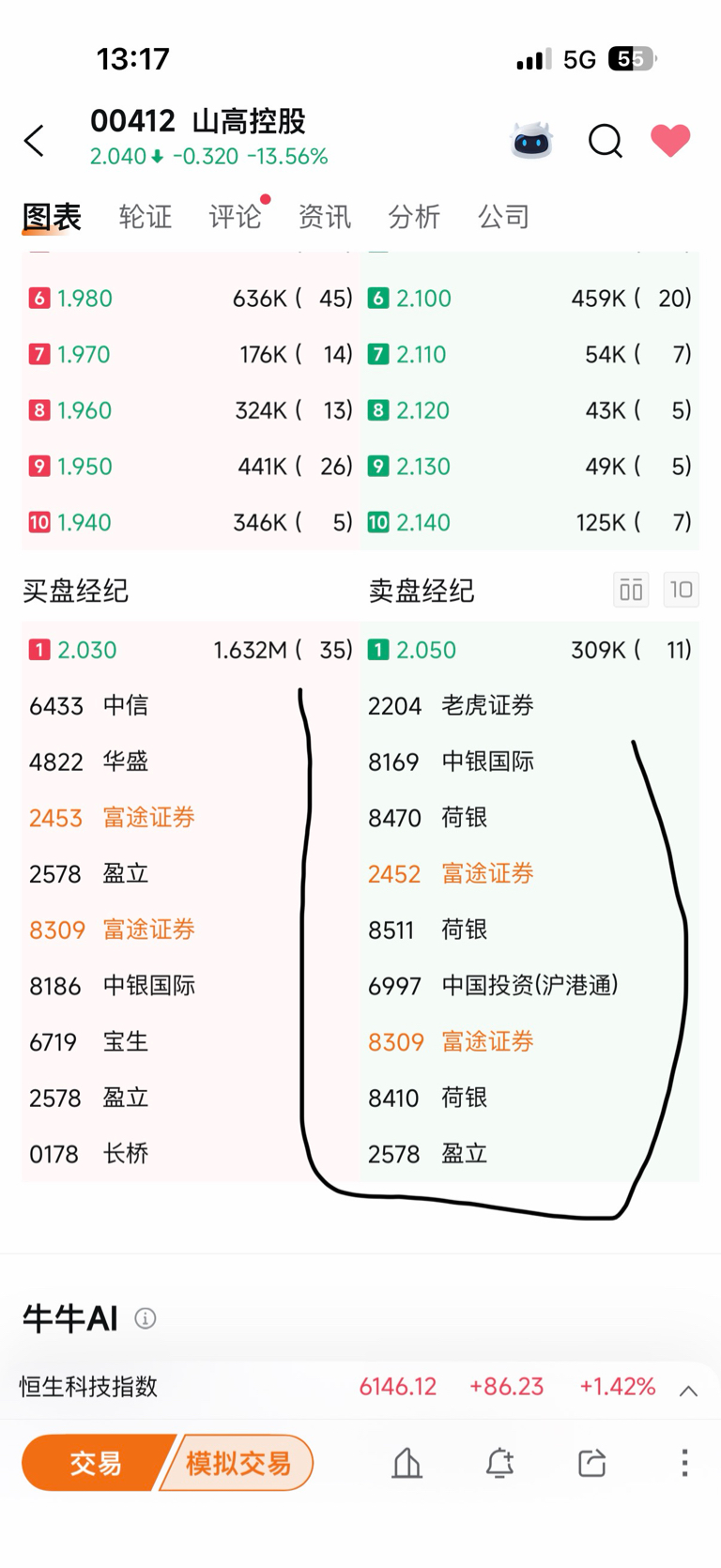 $山高控股(HK|00412)$ 通用户卖差不多了,下午拉升