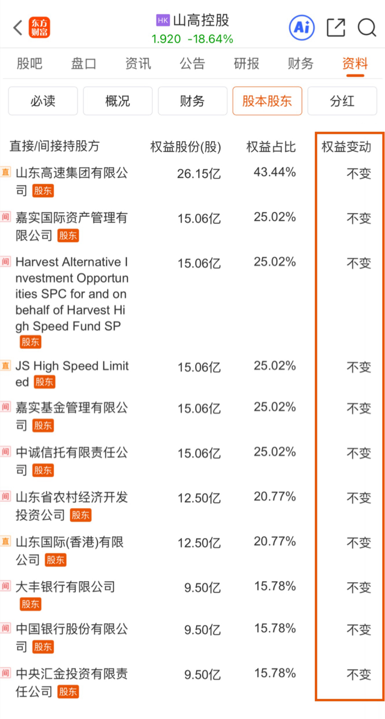 大股东山东高速,中央汇金1股没减持,慌个蛋蛋,现在该慌的是空头。股价暴跌,大股份