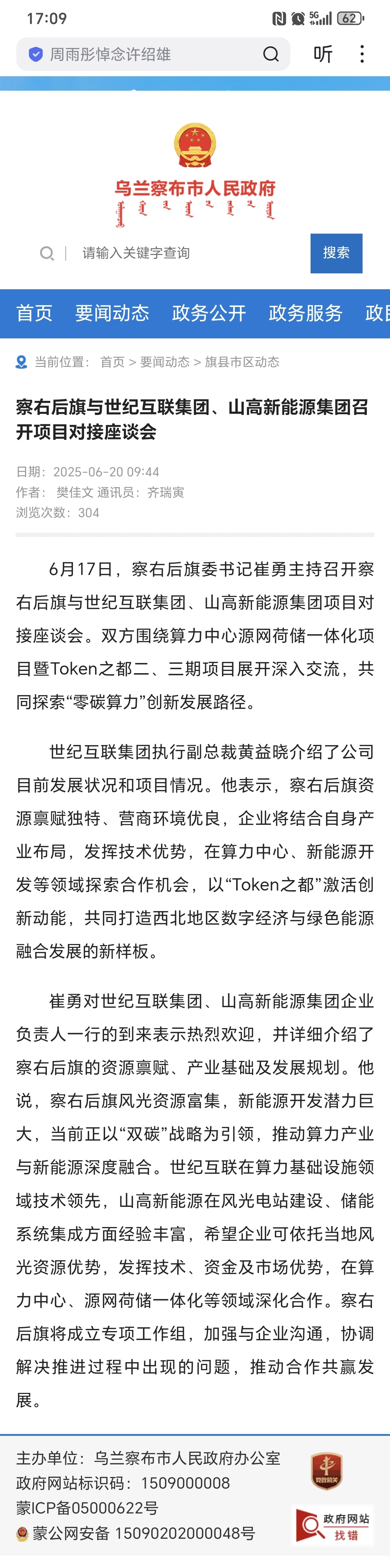 乌兰察布项目是统筹推进的成果,企业搭台,政府背书,年底开花结果。