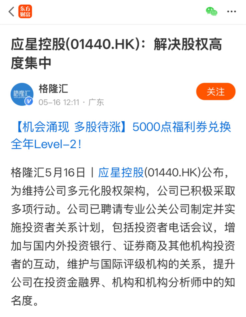 股权集中而已,又不是多大的事,解决了不就行了!应星股份股权集中暴跌至最低2.8元