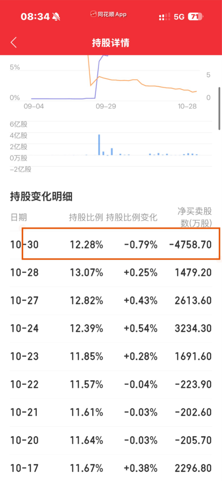 没搞懂,10月30号,整天成交量才四千万股,为什么中证登减少持股量就超过一天成交