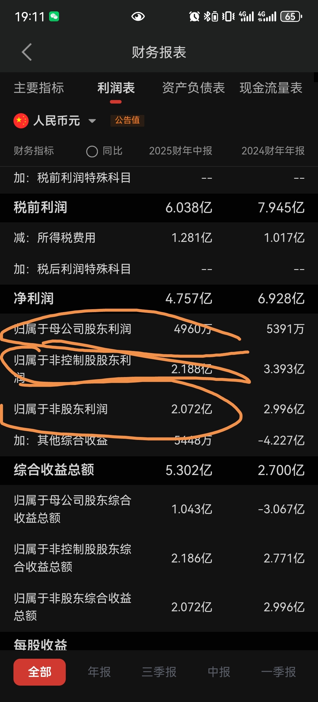 搞经融的老铁,谁能帮我翻译下,这货净利润明明挺高的,为何归母净利润那么低。