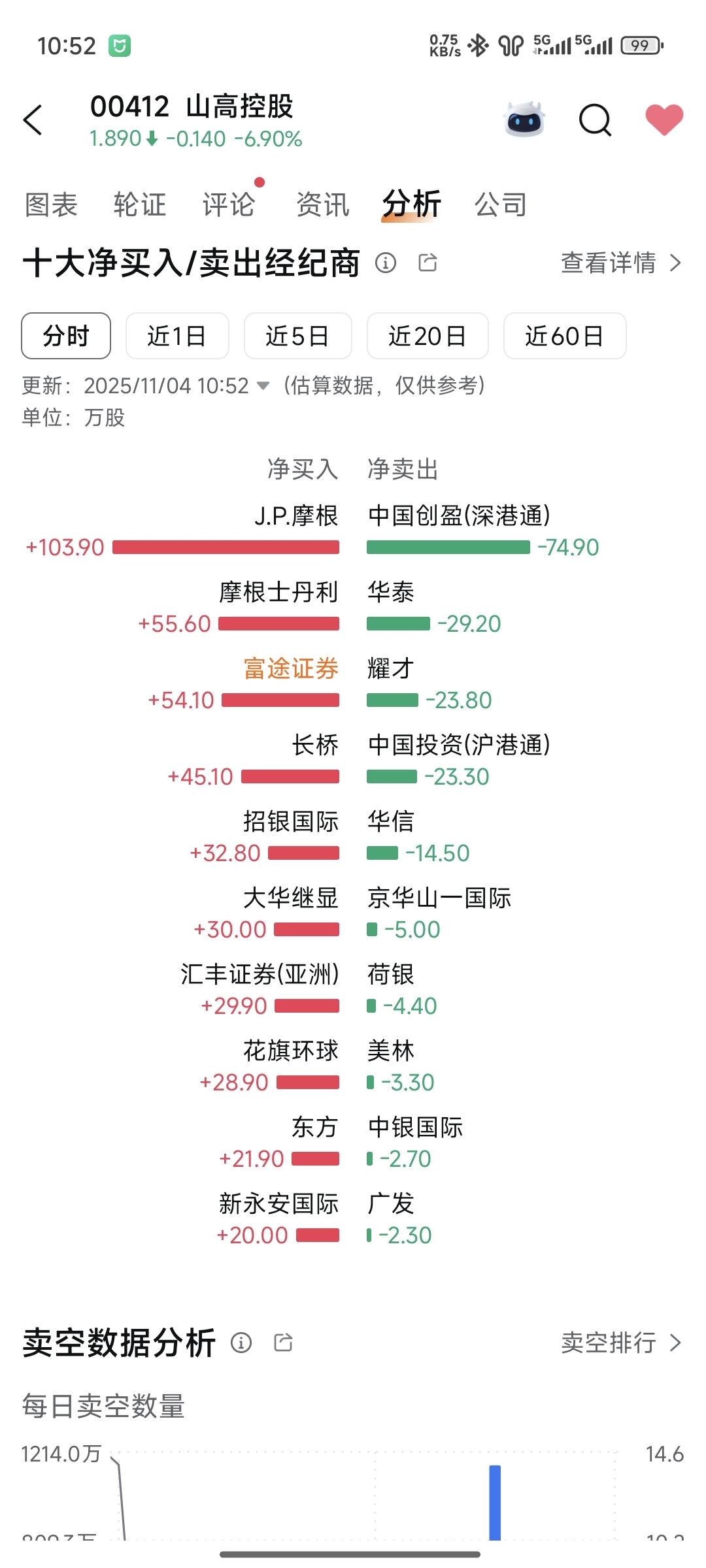 $山高控股(HK|00412)$ 全是港股通在卖。。。太难了。5块什么时候才能回本啊