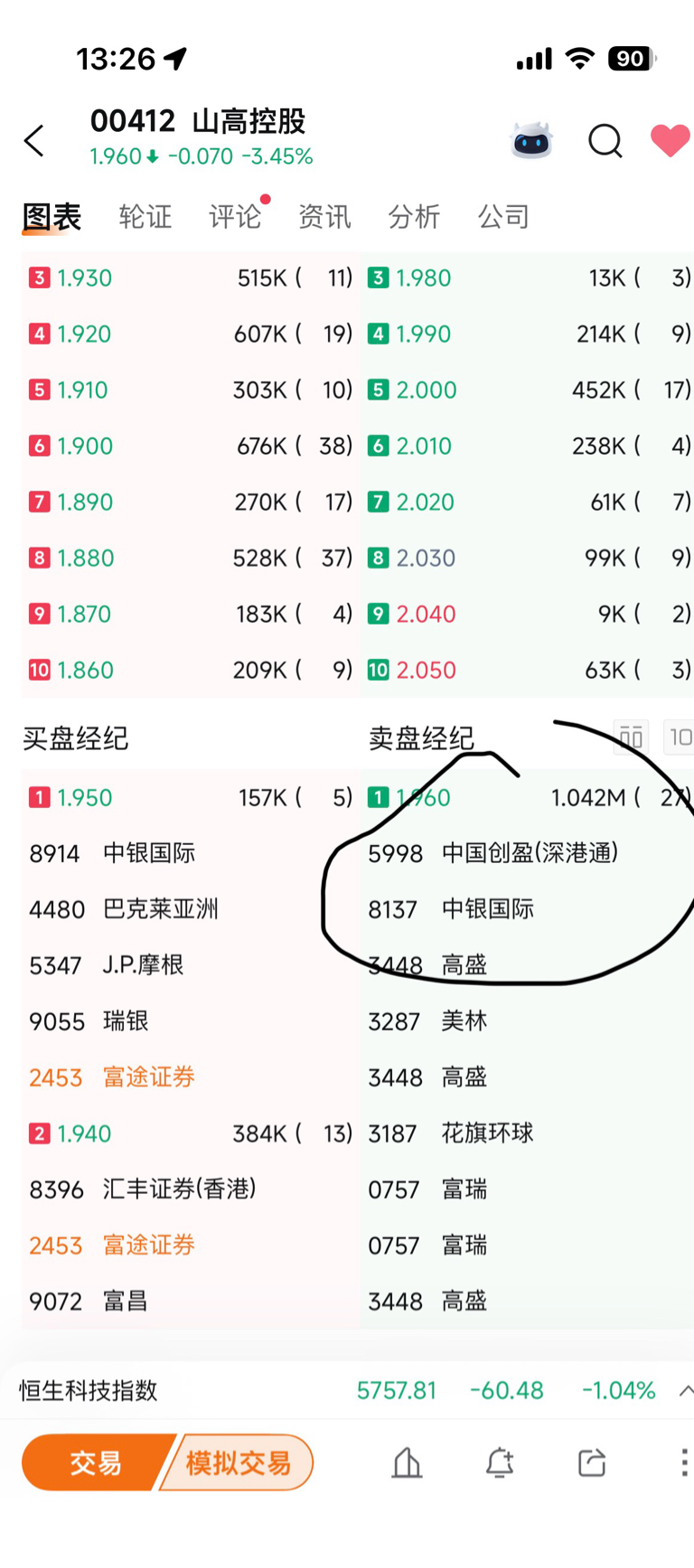 $山高控股(HK|00412)$ $山高控股 (00412.HK)$ 谁深港通这109万吃了就大涨了