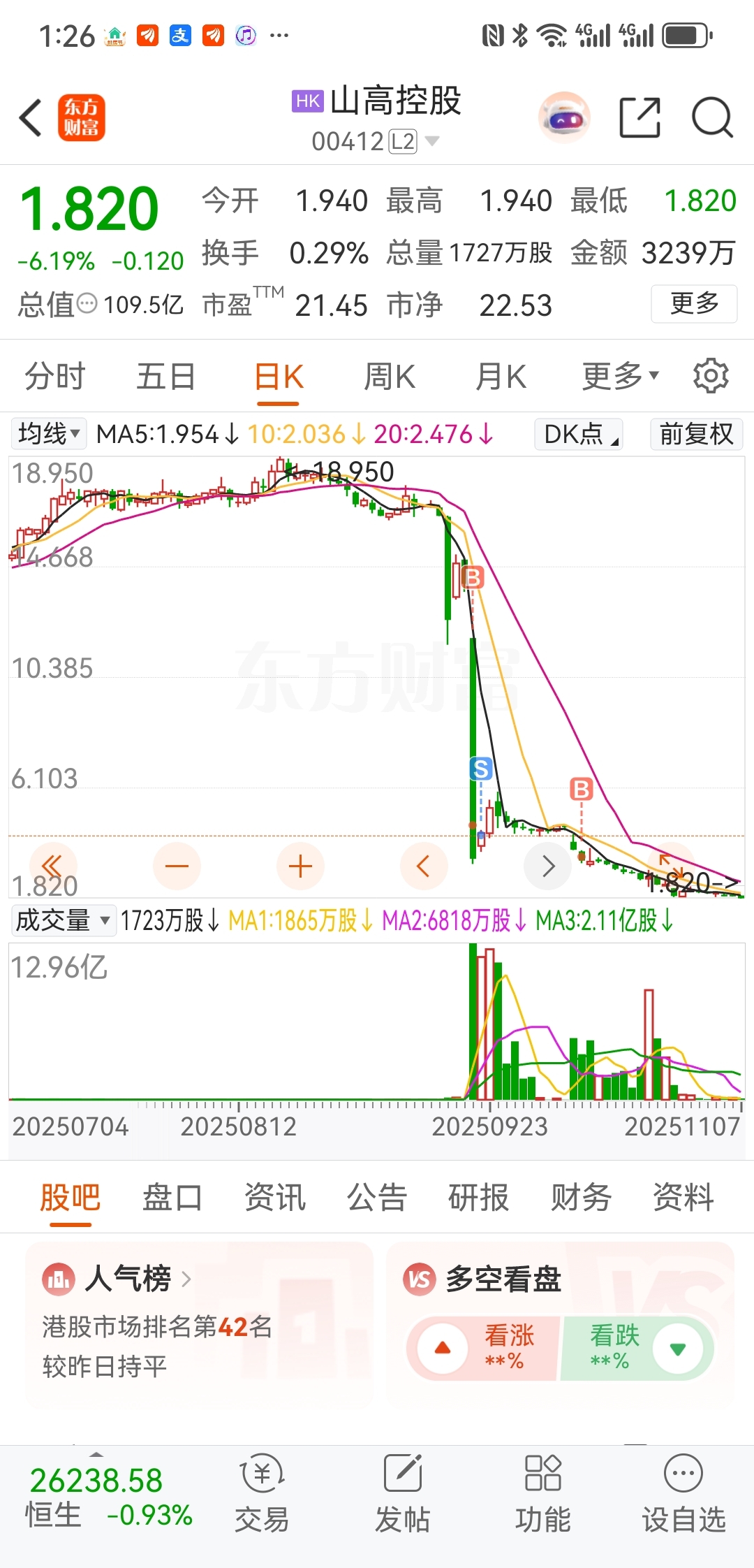 $山高控股(HK|00412)$ 半层仓,亏了60%,明年再看看!删除自选,明年再开盲盒!