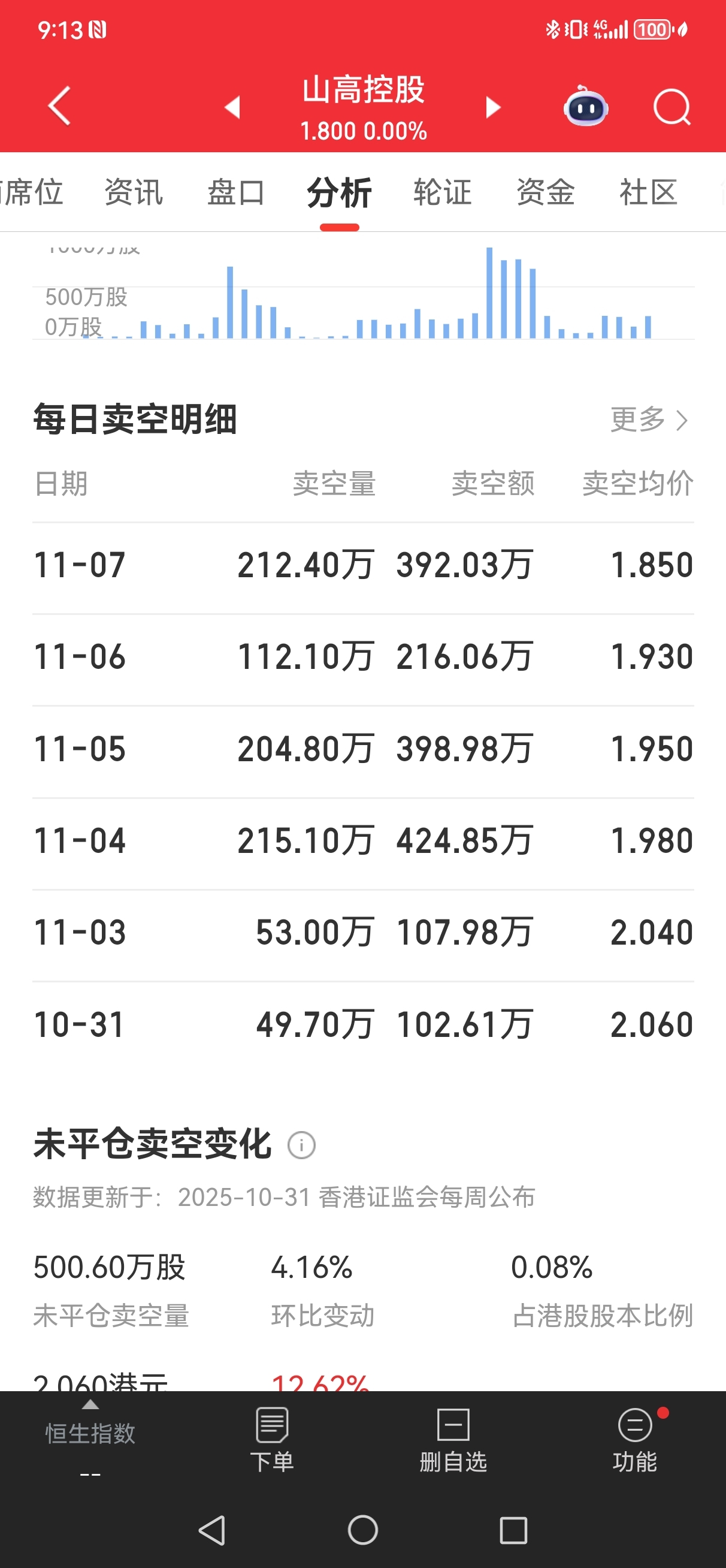$山高控股(HK|00412)$ 别人做空挣钱,越跌就越挣的多呀!还能涨的起来吗