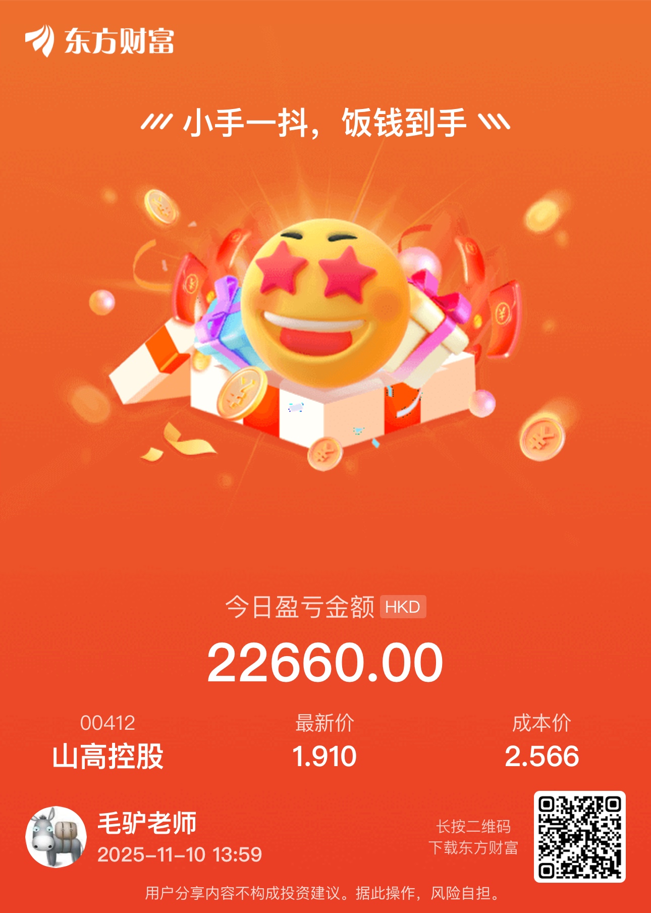 郑重声明:用户在财富号/股吧/博客等社区发表的所有信息(包括但不限于文字、视频、音频、数据及图表)仅代表个人观点,与本网站立场无关,不对您构成任何投资建议,据此操作风险自担。请勿相信代客理财、免费荐股和炒股培训等宣传内容,远离非法证券活动。请勿添加发言用户的手机号码、公众号、微博、微信及QQ等信息,谨防上当受骗!
