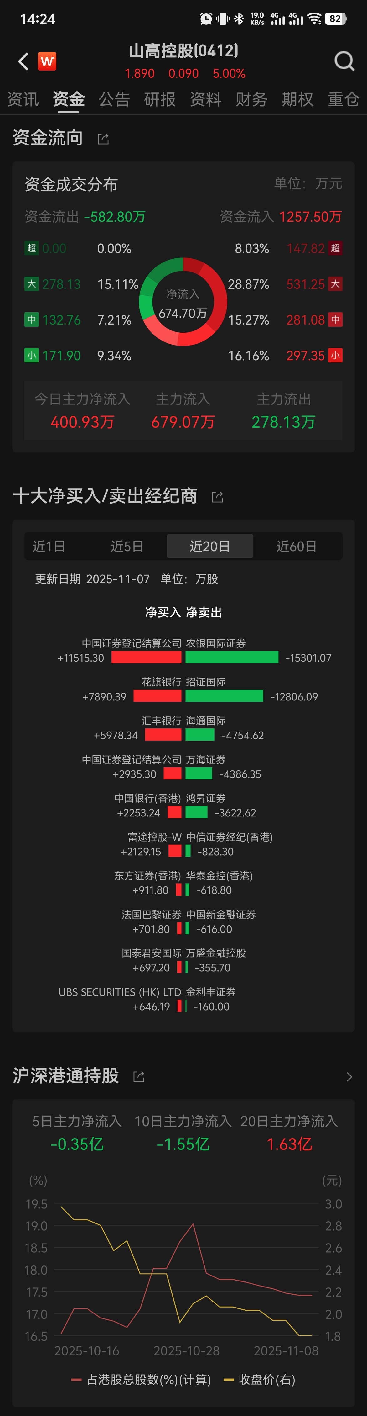 $山高控股(HK|00412)$ 同志们,山高水远,慢慢会好的,开始净流入了