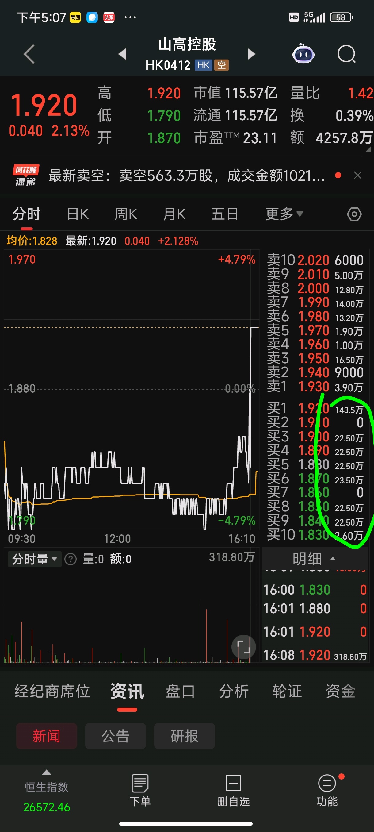 $山高控股(HK|00412)$ 尾盘拉升,非奸即盗!目标1元,不见不散。对倒拉升,自买自卖。香港市场,自买自卖是犯法的。