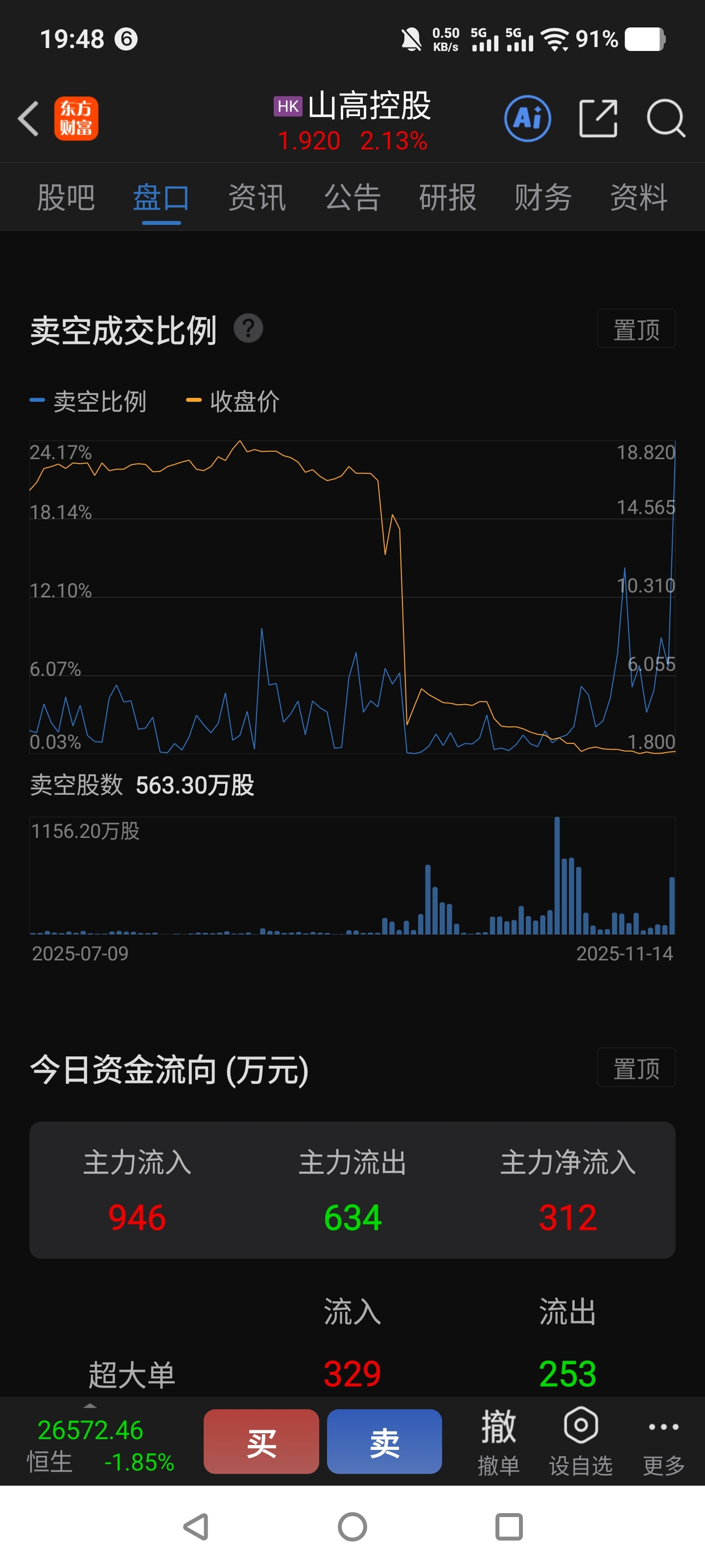 $山高控股(HK|00412)$ 今天做空量不小啊,这个价格能打下去多少呢,做空的空间不够啊!